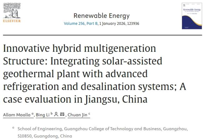 【本网讯】AI工程师学院阿拉姆教授在工程技术领域国际顶级期刊《Renewable Energy》(IF=9.1)发表题为“Innovative hybrid multigeneration Structure: Integrating solar-assisted geothermal plant with advanced refrigeration and desalination systems; A case evaluation in Jiangsu, China”的学术论文.