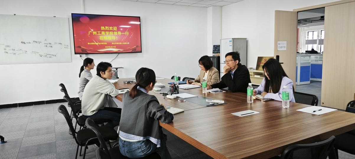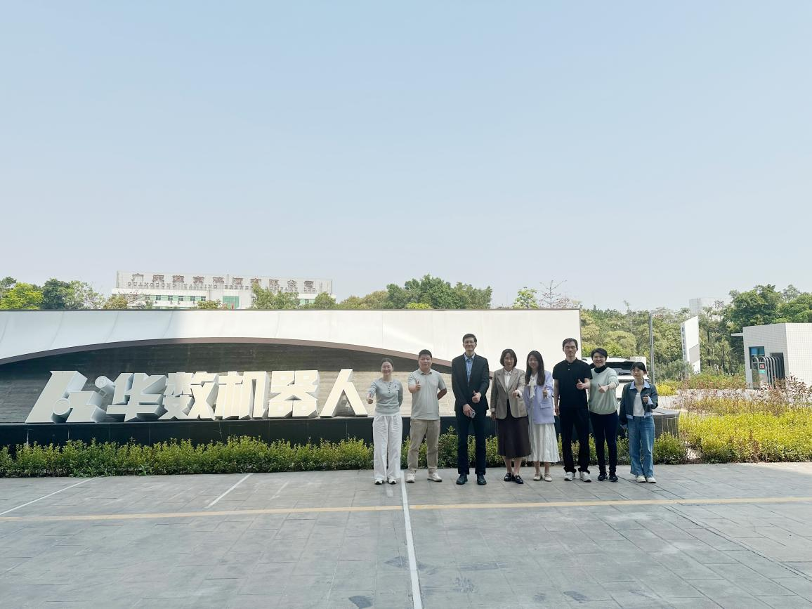 为深入推进产教融合、校企协同育人,精准对接人工智能与机器人产业人才需求,优化人才培养方案,2026年3月19日,广州工商学院AI工程师学院副院长胡垂立带队,人工智能专业教研室主任刘红英、副主任李慧婷、刘记伟一行四人,前往华数机器人佛山园区开展交流调研活动,华数机器人相关负责人雷总等热情接待了调研团队。