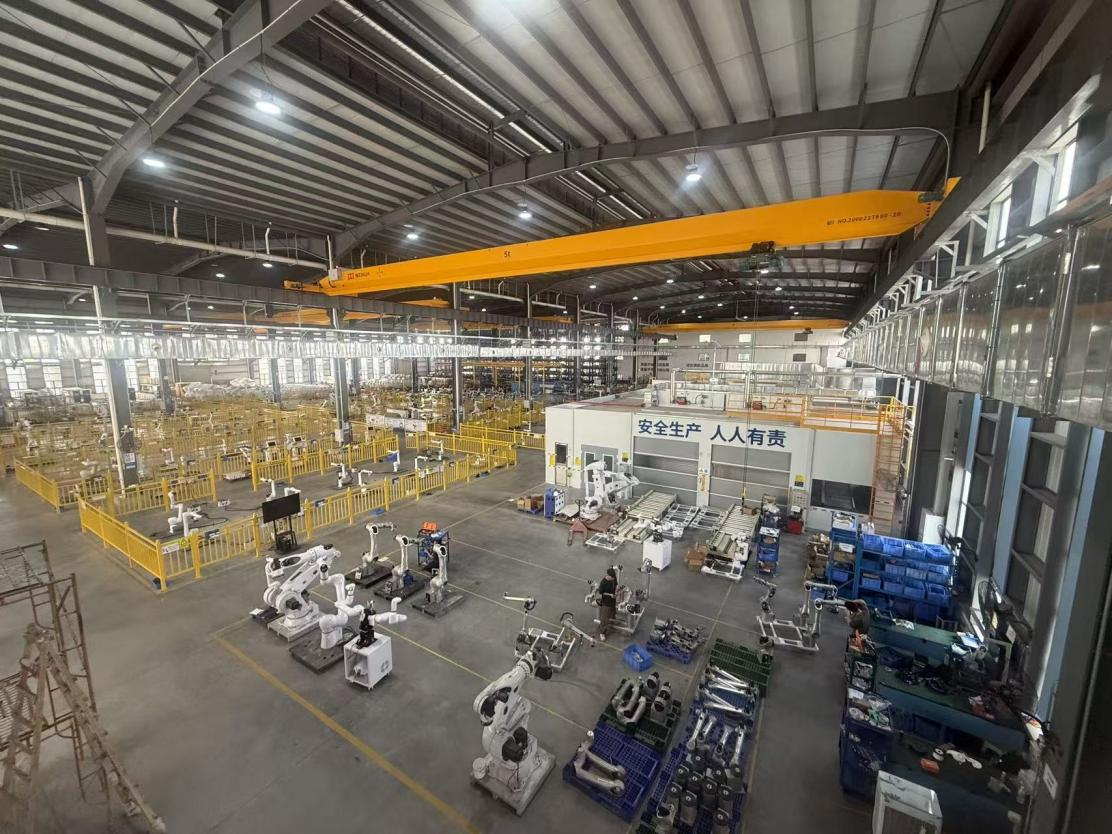随后,调研团队深入企业生产车间,实地观摩了机械臂及各类机器人的测试与生产过程。车间内,多台不同型号的机器人精准完成焊接、装配、搬运等模拟作业,展现出高效、精准、智能的作业优势,工作人员详细讲解了机器人的生产工艺、测试标准及核心技术亮点,调研团队成员认真聆听、不时提问,深入了解产业一线的技术应用和人才需求细节,直观感受智能制造产业的发展态势。