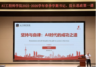 春启新程,奋楫扬帆。为落实立德树人根本任务,引导青年学子在AI时代找准成长方向、勇担时代使命,2026年3月31日,AI工程师学院院长张永平教授以“坚持与自律:AI时代的成功之道”为题,为学院学子讲授思政第一课。