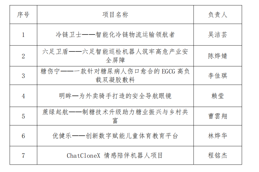 为进一步推动专业教育与创新创业深度融合,培养具有创新精神和实践能力的高素质应用型人才,更好地挖掘和培育学科竞赛优质项目,经项目团队申报、学院推荐、专家评审,校内公示,现公布中国国际大学生创新大赛(2026)专创融合首批立项项目名单,并就有关事项通知如下: