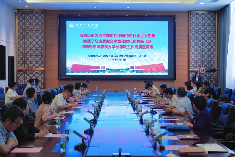 【本网讯】5月18日下午,广州工商学院党委举办学习贯彻习近平新时代中国特色社会主义思想主题教育读书班暨党委理论学习中心组学习专题会,深刻认识习近平新时代中国特色社会主义思想实现了马克思主义中国化时代化新的飞跃。学校党委副书记、副校长、马克思主义学院院长张辉作领学报告,纪委委员、教师工作部部长刘三华,纪委委员、学生工作部部长徐达,音乐学院党支部书记毕艳茹作主题发言。学校领导、两委委员,各教学部门、职能部门、二级党组织负责人参加。读书班由学校党委书记张振超主持。