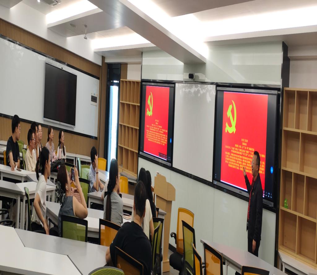 教工第二党支部书记以讲党课的形式向本支部党员传达广东高校“双带头人”教师党支部书记“强国行”“广东行”专项行动推进会议精神,并开展书记讲党课活动,主题为:“推动教育、科技、人才‘三位一体’协同融合发展”党课专题学习。
