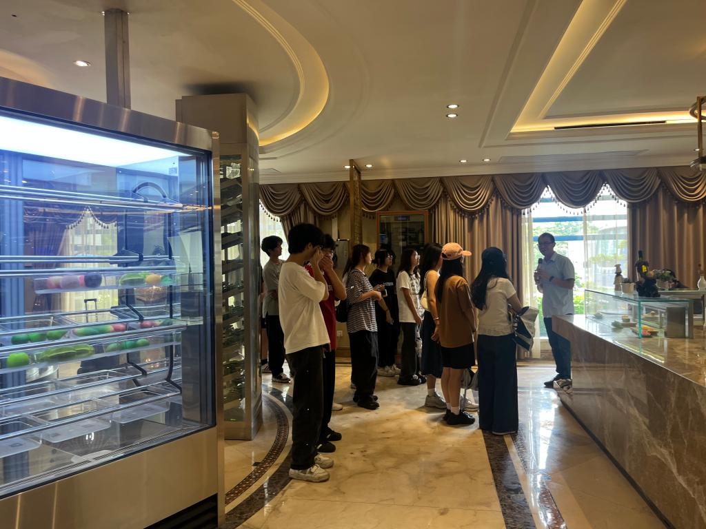 【本网讯】2025年7月8日广州工商学院管理学院组织24工商管理B2班和24工商管理B3班共16名大一学生开展认知实习,前往广东星星制冷设备有限公司开展认知实习,在实践中深化专业认知,探索职业发展方向。下午两点,学生们抵达位于广东省佛山市三水区乐平镇南边工业区南丰大道的广东星星制冷设备有限公司。星星制冷人力行政部部长卢祥添热情接待,并开启此次认知实习的首项活动——企业产品介绍。在产品展示区,卢祥添部长重点介绍了企业核心产品前厨冰柜和后厨冰柜。“前厨冰柜注重设计的美观与便捷性,操作界面简洁,能完美融入餐厅前厨环境;后厨冰柜则强调大容量存储与高效制冷,可满足大量食材保鲜需求”。他边说边打开后厨冰柜,展示可调节隔层与智能控温系统,这种设计便于食材分类存放,精准控温能让食材始终保持最佳状态。