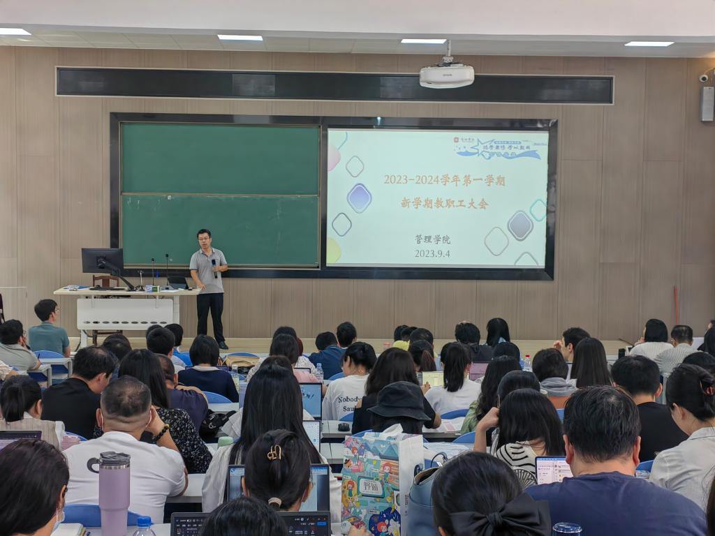 【本网讯】2023年9月4日,学院在第一实验大楼C204召开2023-2024学年第一学期新学期教职工大会。会议由学院院长乔鹏亮主持,全院教职工出席参加。
