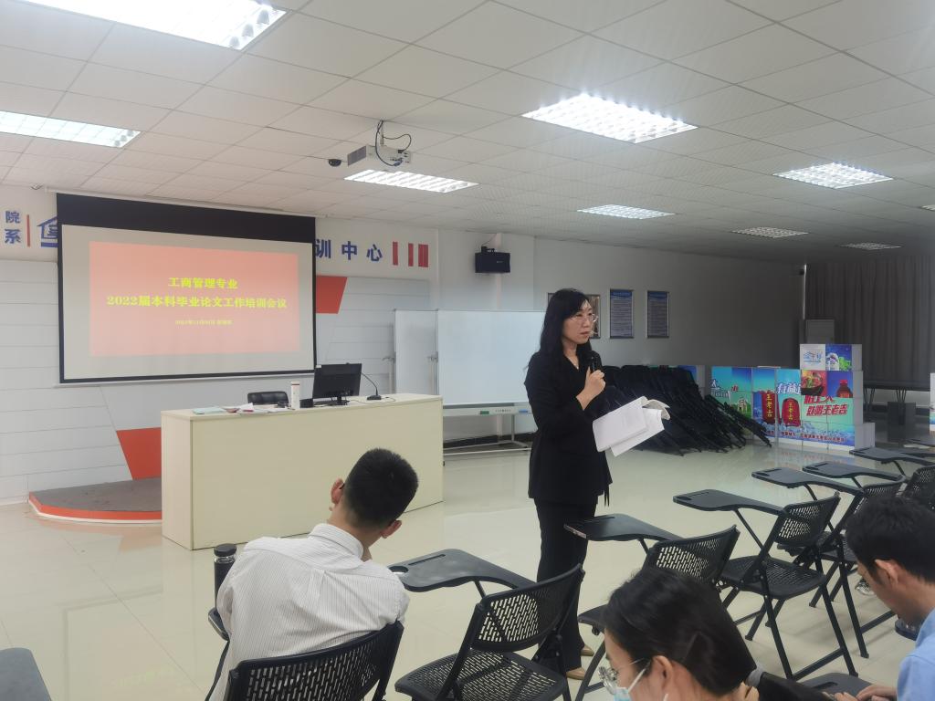 为规范管理学院工商管理专业本科生毕业论文的管理,保证学生毕业论文的顺利进行与完成,确保和提升毕业论文的质量,进一步贯彻落实《2021届本科毕业论文指导工作指南》、《广州工商学院本科生毕业论文(设计)管理办法》及《关于做好2022届本科生毕业论文(设计)选题和过程管理工作的通知》等系列文件,工商管理教研室于11月4日下午,在第二实训楼A302召开了毕业论文指导的专题会议,会议由教研室主任单丽薇教授主持,教研室全体教师出席会议。