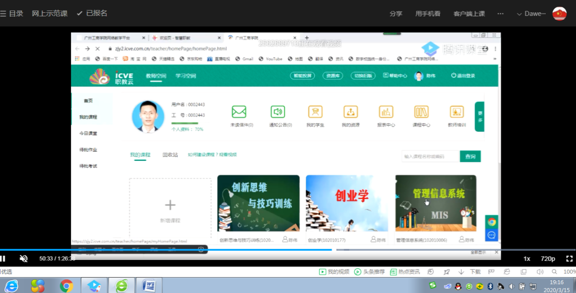 【本网讯】为了战胜疫情,师生共同完成“开学不返校、停课不停学、停课不停教”的教学任务,2020年3月12日上午十点,工商管理系举行了本学期第二次网络示范课活动,本次示范课由陈伟老师主讲。