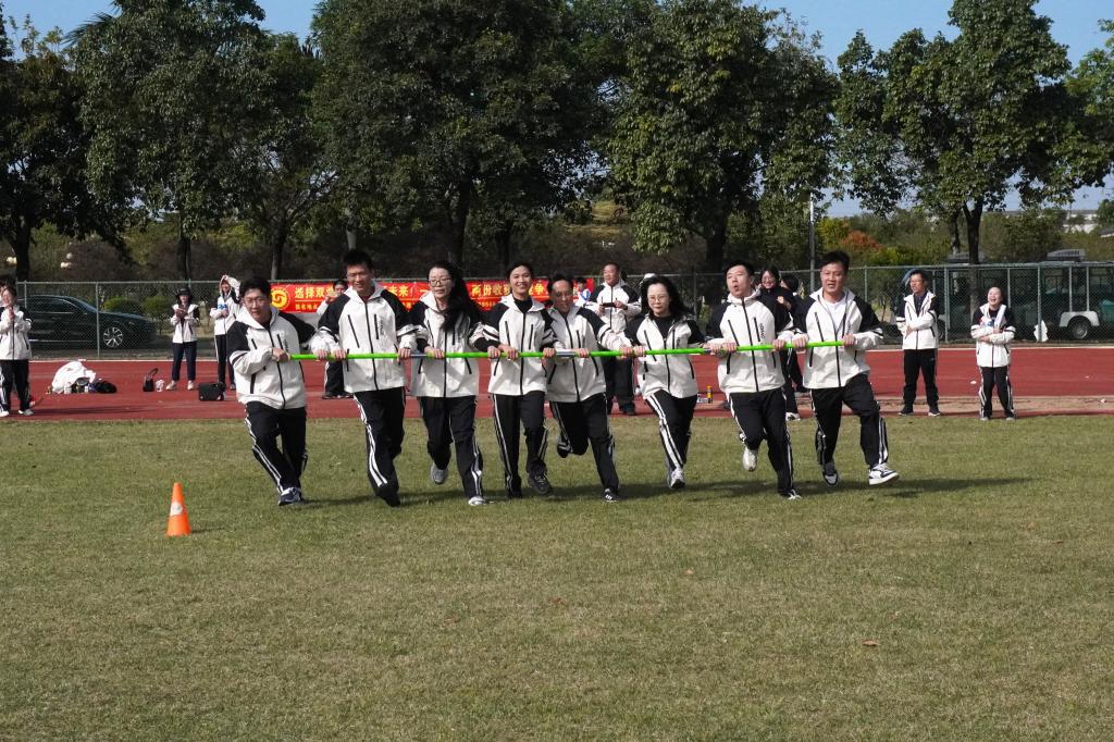 赛场上,趣味与竞技交织,欢笑与汗水齐飞。田径场上的旋风跑,队员们默契配合、步调一致,在奔跑中展现协作力量。八人横列攥紧长杆,发令声落,队伍如拧成一股的麻绳向前旋冲,长杆在掌心传来的力道里微微震颤,却始终没脱离半分。一时不察突遇脚下不稳的磕碰,攥着长杆的老师顺势跪倒在地,掌心的力道却没松半分,并迅速调整步频重新跟上团队节奏,而长杆的震颤里多了份不服输的韧劲。