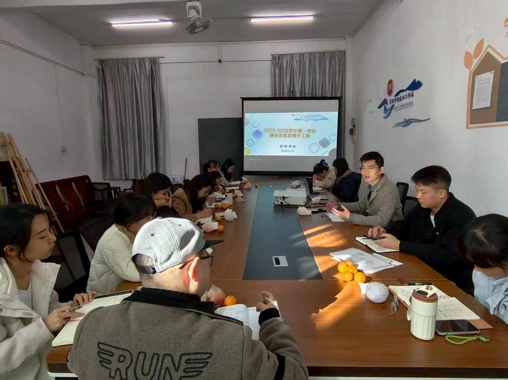【本网讯】为切实落实立德树人根本使命,着力锻造一支善沟通、懂心理、有温度的高素质辅导员队伍,2025年12月15日下午,管理学院在就业工作站开展了“心理助人与沟通艺术”辅导员素质能力提升专题讲座。本次活动由管理学院二级心理指导站指导老师程权担任主讲,学院党委副书记、副院长赵小锋出席,管理学院学工队伍全体辅导员参加。讲座围绕新时代高校心理育人工作的实践要求,结合辅导员日常工作中遇到的实际问题,系统探讨了心理助人的理念、方法与沟通艺术。
