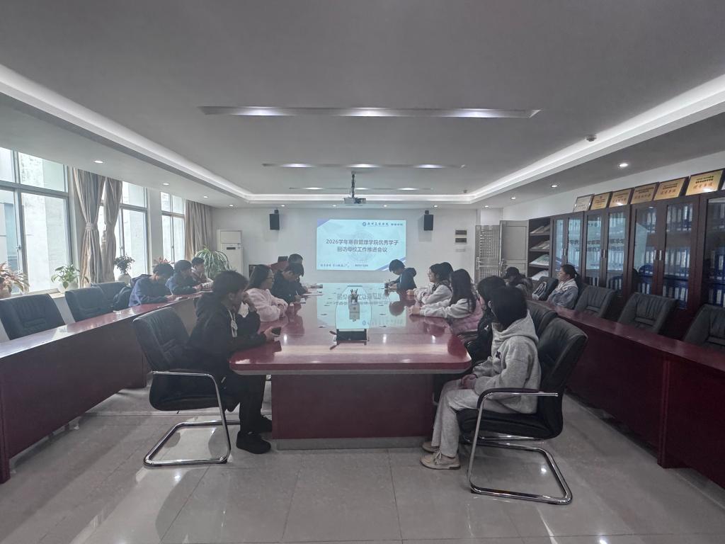 【本网讯】为搭建大学与高中的沟通桥梁,展现管理学院办学特色与学子风采,吸引更多优质生源,管理学院于2025年12月25日下午在院部楼612会议室召开2026学年寒假优秀学子回访母校工作推荐会议,正式启动寒假回访母校活动筹备工作。管理学院办公室主任陈海松、学工办主任欧荣林、25级普高辅导员张永训以及2026年寒假回访母校的管理学院学子共同参会。