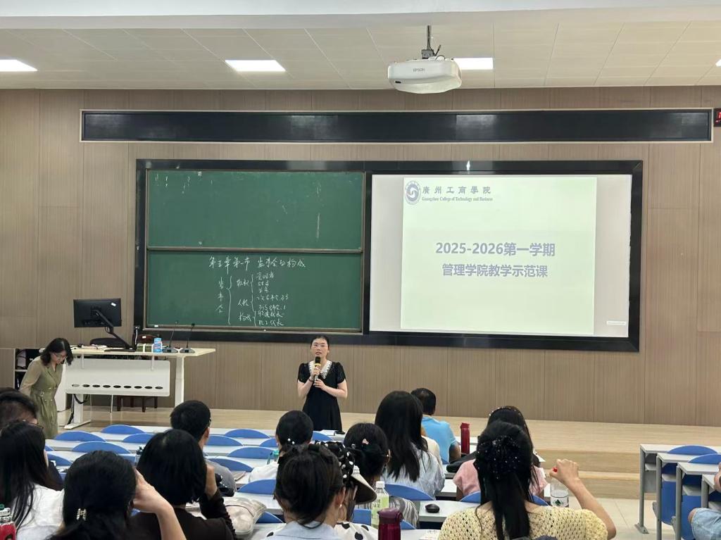 【本网讯】为深化教学改革、推广先进教学理念,全面提升人才培养质量,广州工商学院管理学院于2025年9月25日在实训楼I-C204成功举办2025–2026学年第一学期教学示范课活动。本次活动由管理学院督导组组长柳颖副教授主持,学院全体专任教师齐聚一堂,共研教学艺术,共话育人新篇。