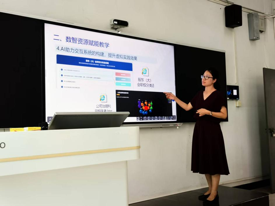 会上,潘思宇老师结合所授课程《公司治理》,围绕数智化内容融入、工具适配与能力落地等方面与老师展开深入研讨。潘思宇老师汇报聚焦广州工商学院《公司治理》课程数智化建设,先阐述建设背景:一是数字经济发展需求,受政策法规迭代、产业跨界融合等驱动;二是新文科建设要求,需跨学科知识融合、技术赋能教育转型及创新能力培养;三是传统教学存在知识迭代滞后、课堂互动受限等痛点。接着介绍育人创新设计:教育思想上,以“用心(HEART)5步法”结合加涅“九段”教学程序,贯穿课前课后;资源建设上,打造含78个线上视频、102个非视频资源等的资源库,构建知识图谱与AI助教知识库;在混合式教学上,分课前、课中、课后阶段,结合线上资源与线下活动,搭配多元考核方式。最后说明数智化实施路径:先整合智能教学资源,覆盖9个章节,融入思政元素,开展混合式活动,构建280余个知识点的知识图谱,同步206条AI助教知识库;再以数智资源赋能教学,借助知识图谱、AI助教辅助学习与学情分析,用AI生成多元内容、构建交互系统、打造数字人及微课;还构建动态评价体系,总成绩由各占50%的过程性与终结性考核构成,过程性评价含课堂表现等多维度。