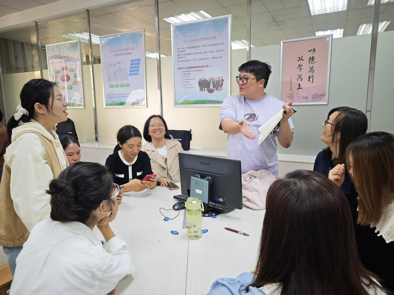 在专业实务课程方面,朱昕瑶老师的《薪酬管理》课程强调薪酬体系所承载的公平与社会责任;朱晓蓥和胡献丹老师的《工作分析与设计》课程则注重弘扬工匠精神与法治观念。蔡凯鹏老师更将视角延伸至前沿领域,分享了在AI招聘技术教学中引导学生树立“科技向善”伦理意识的经验。苏玲等青年教师提出,课程思政亦可拓展至对学生自我认知与职业规划的积极引导,获得了广泛共鸣。