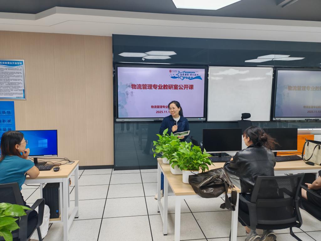 【本网讯】11月13日,为进一步深化实训课程教学改革,探索高素质、应用型物流管理人才培养的新路径,物流管理教研室组织《物流管理综合实训》公开课。本次公开课由刘嘉俪老师主讲,课程内容聚焦“亚马逊FBA管理能力”,充分利用先进的虚拟仿真实训平台,为到场师生呈现了一堂教学设计精巧、学生参与度高、思政元素有机融合的精彩实训课。物流管理教研室全体教师及部分学院督导参与了此次观摩与研讨。