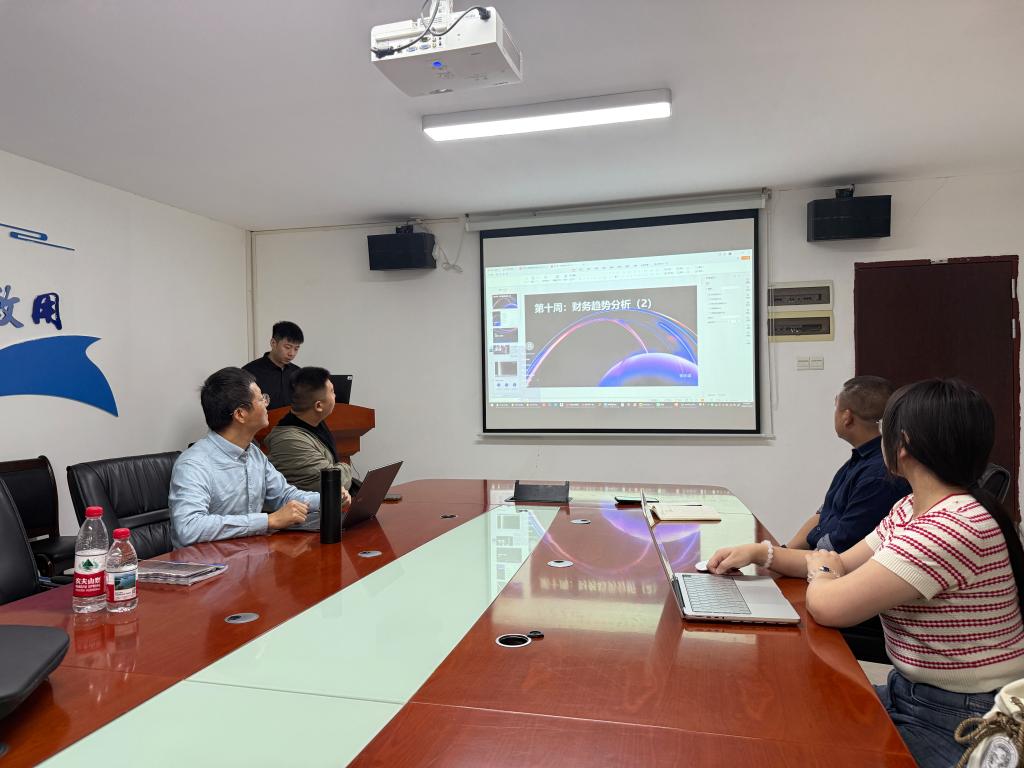 【本网讯】为持续推进基层教学组织建设,提升数智类课程的教学质量与内容协同,管理学院大数据管理与应用教研室大数据理论课程组于2025年11月14日中午在院部楼624室组织开展本周教学研讨会。本次活动围绕“课程设计分享”主题展开,由张志诚老师主讲,重点展示其承担课程《Python财务分析》的整体教学设计思路与实施路径。