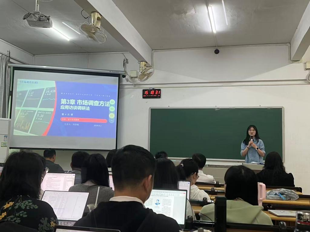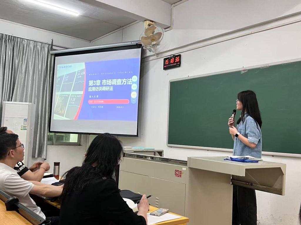 【本网讯】2026年4月2日15:30-17:00,工商管理教研室公开课在教1-D201顺利举行。本次公开课由教研室主任单丽薇主持,教研室全体教师参与观摩学习。本次公开课由刘荟敏老师主讲,授课内容为《市场调查实训》课程中的“应用访谈调研法”模块,教研室全体教师参加了听课与评课。