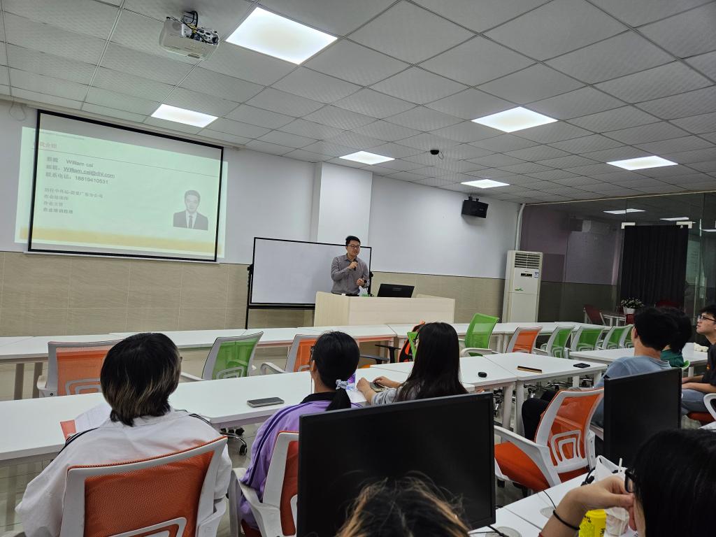 活动期间,中外运敦豪的四位高管结合自身岗位经验,带来了四场干货满满的专题分享。人力资源部人力专员何丽芳率先开讲,系统介绍了DHL广东分公司的发展历程、核心使命与独特企业文化,让学生对企业的运营理念与发展格局有了全面认知;口岸部清关组经理陈颖围绕清关业务展开讲解,既涵盖了通用清关流程,也重点介绍了DHL特有的清关模式与优势,为学生解锁了跨境物流的关键知识点;运输部门经理蔡魏聚焦货物快件运输中的风险管控,深入剖析了危险品识别、运输故障应对等核心问题,分享了企业成熟的解决方案与实战技巧;培训部主管余晓旋以“快件转运全流程”为主题,详细拆解了预约、调度、取件、离站、出口、转运、进口、入站及派送等关键环节,帮助学生理清物流运作的完整链路。