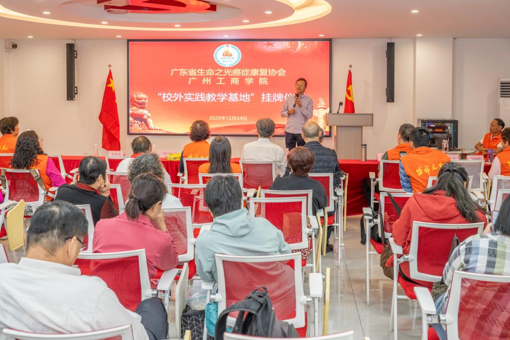 【本网讯】2025年12月24日上午,广东生命之光癌症康复协会广州总部会议室暖意融融,一场简洁却隆重的授牌仪式在此举行。广州工商学院管理学院大数据管理与应用专业教研室刘兴垦博士代表学院,向协会理事长郭连有授予“广州工商学院校外实践教学基地”牌匾和荣誉证书,标志着华南地区首家由高校与国家5A级癌症康复组织共建的“生命教育实践基地”正式落地。广州工商学院管理学院与广东生命之光癌症康复协会等与会代表共同见证,并同步启动“青春益起行·关爱生命”实践公益周,推动公益场景与数智治理能力同频共振。