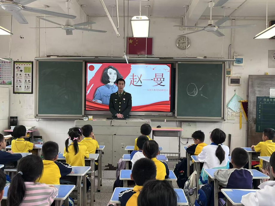 【本网讯】八十余载风雨兼程,抗战精神永照初心。今年是纪念中国人民抗日战争暨世界反法西斯战争胜利80周年,为深入落实国防教育方针,弘扬伟大抗战精神,厚植青少年爱国情怀与历史责任感,在广州工商学院管理学院党委和乐平镇三江村党委的携手策划下,广州工商学院管理学院党员代表、党校学员代表、党群服务站成员代表,以及退役大学生代表组成四支“国防故事”宣讲队,于2025年10月30日赴乐平镇三江小学,开展以“八秩烽火忆峥嵘,童心筑梦护和平”为主题的公益小课堂活动为三江小学二至五年级学生带来了一场兼具思想深度与互动趣味的爱国主义教育盛宴。