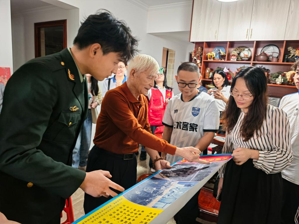 【本网讯】红色江山,热血铸就;红色基因,代代相传。为进一步学习贯彻习近平新时代中国特色社会主义思想,传承红色基因,筑牢初心使命,2025年10月29日重阳节之际,管理学院学生第一党支部携手佛山市三水区云东海街道映海南社区和一善一食餐厅,深入社区开展慰问抗战老兵活动,以实际行动学习贯彻党的二十届四中全会精神,践行新时代红色基因传承使命。