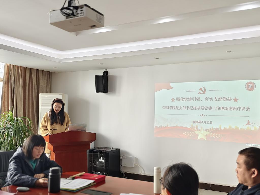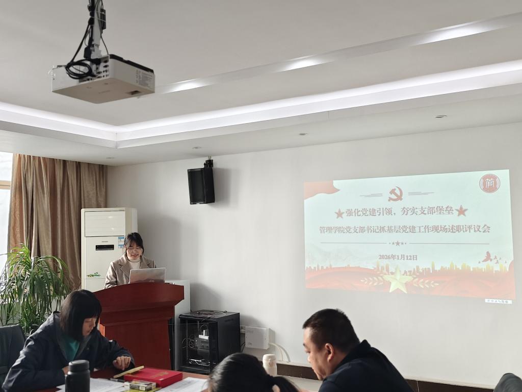 【本网讯】为深入贯彻落实新时代党的建设总要求,压实基层党组织书记抓党建“第一责任人”职责,全面检验过去一年各党支部工作成效,谋划新一年学院党建工作蓝图,2026年1月13日,管理学院党委在三水校区院部楼612会议室召开了2025年度党组织书记抓党建述职评议会。管理学院党委书记乔鹏亮、党委副书记赵小锋出席会议,其他党委委员、学院各党支部书记、委员及党员代表与会。会议由党委副书记赵小锋主持,8位党支部书记依次进行现场述职,全面“晒”出年度“成绩单”,接受组织评议。