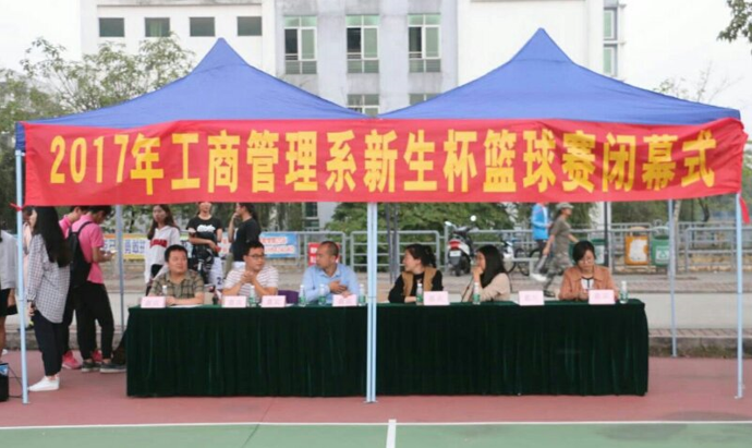【本网讯】2017年11月9日下午,我系新生杯篮球赛男子冠军赛暨闭幕式在广州工商学院三水校区篮球场上举行。我系王伟江老师、李翔老师、余兢成老师、曾广志老师、许莹老师、陈影老师应邀出席。