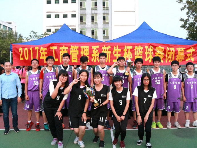 在闭幕式上,主持人宣布此次新生杯篮球赛的获奖队伍,并由现场嘉宾为获奖队伍颁奖。在此次新生杯篮球赛中,莫锦东同学获得三分球大赛男子组的冠军,司徒芊同学获得女子组的冠军,而获得新生杯篮球赛男子组冠军的队伍是17工商管理B4班,获得男子组亚军的是17工商企业管理A3班,获得男子组季军的是17工商企业管理A1班,获得新生杯篮球赛女子组冠军的队伍是17人力资源管理B1班,获得女子组亚军的是17工商企业管理A4班,获得女子组季军的是17工商管理B6班。