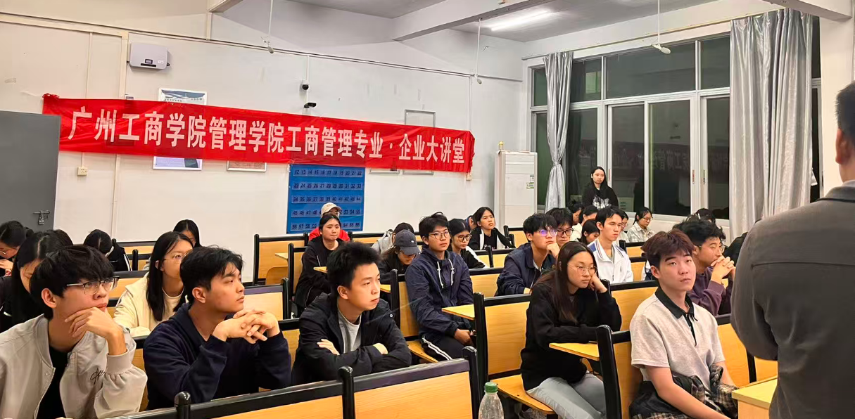 【本网讯】为进一步深化产教融合,帮助管理学院学生明晰职业规划、探索创业方向,2025年11月13日晚上7点,广州工商学院管理学院在教I-A305教室隆重举办“行业导师进校园”活动。本次活动特邀广州长鹏光电科技有限公司创始人之一林山先生担任主讲嘉宾,以自身九年创业历程为核心,为现场座无虚席的师生带来一场兼具实践指导性与思想启发性的分享。活动全程氛围热烈,同学们专注聆听、认真记录,在互动交流与校企授牌环节中收获满满。
