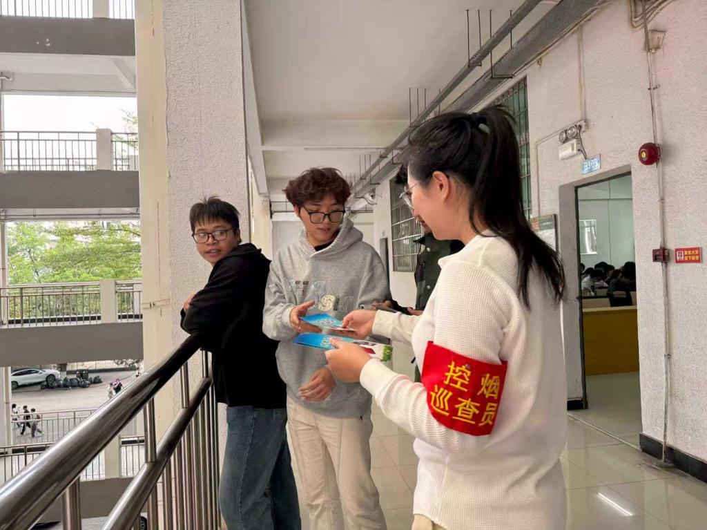 宿舍楼里,由谢丽星老师带领志愿者们进行走访,一边发放反诈控烟宣传手册,一边与同学们亲切交流。他们叮嘱大家在宿舍用电、网购的过程中提高警惕,谨防各类电信诈骗;同时呼吁大家互相监督,共同打造无烟宿舍,让清新空气萦绕在寝室的每一寸空间。同学们纷纷表示,会将学到的知识分享给室友,一起为营造安全健康的校园环境出力。