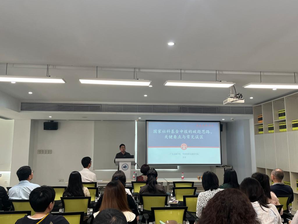 【本网讯】为助力我院科研人员精准把握国家社科基金申报要点,破解申报难题,提升申报质量,2026年3月19日上午,我院特邀广东金融学院吴非副教授,开展国家社科基金申报专题指导讲座。会议由赵小锋副院长主持,易露霞副校长出席了本次会议,全院拟申报国家社科基金的科研骨干、青年教师及科研管理人员参会。