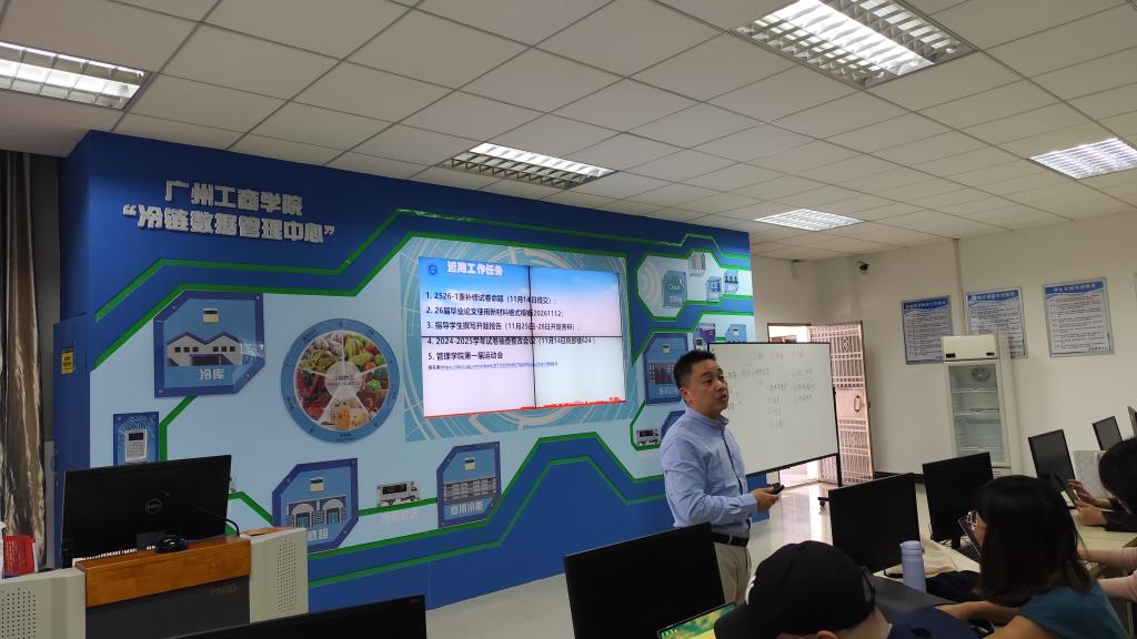 【本网讯】为进一步推动物流管理专业各项工作的有序开展,确保本学期各项重点任务落到实处,11月13日下午,物流管理专业于第二实验楼A103召开了教研室工作例会。本次会议由章桂永老师主持,物流管理专业全体教师参加了本次会议。会议伊始,章桂永老师首先传达了学院近期的工作精神,并强调,本学期的教学工作已进入关键阶段,必须对标各项任务的时间节点,严抓规范、狠抓落实。随后,他围绕五项近期重点工作进行了详细说明。第...