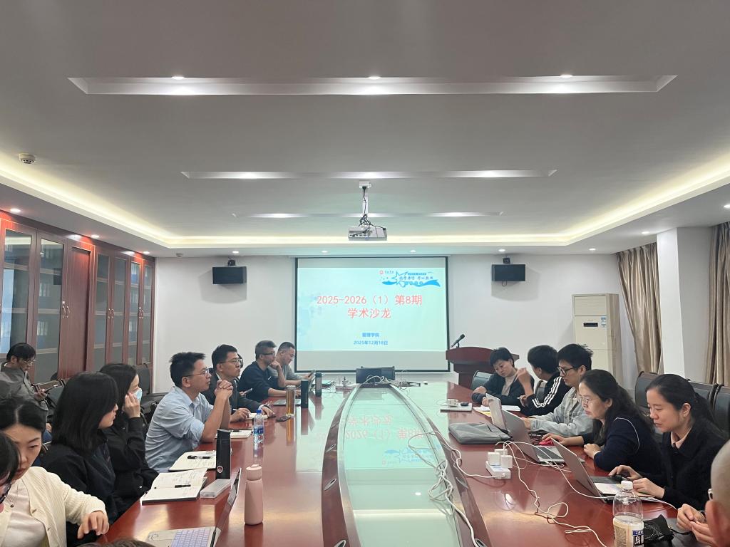 【本网讯】2025年12月18日,管理学院2025-2026学年第一学期第8期学术沙龙在院部楼211举行。此次活动由邹剑峰副院长主持,管理学院人力资源管理专业教研室的妥宏武博士和任德孝博士分别进行主题分享,全体科研岗博士及部分报名老师自愿参加。妥宏武博士首先进行主题分享。妥博士分析了《中共中央关于制定国民经济和社会发展第十五个五年规划的建议》和中央经济工作会议精神,讲述了十五五根据十五五规划的总体基调、历史定位、面...