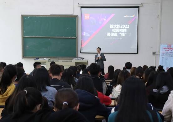 【本网讯】为了让应届毕业生获得更多的就业机会,2021年10月22日下午14:00,钱大妈农产品有限公司在我校三水校区第二实验楼C305举办“勇往直钱”为主题的2022届校园招聘宣讲会。出席本次宣讲会的嘉宾有:钱大妈农产品有限公司人力资源中心招聘组的王朝政先生以及博国龙先生。会议伊始,由钱大妈农产品有限公司人力资源中心招聘组的王朝政先生向大家介绍钱大妈的企业理念“不卖隔夜肉”。王朝政先生与同学们进行交流讨论,了解...