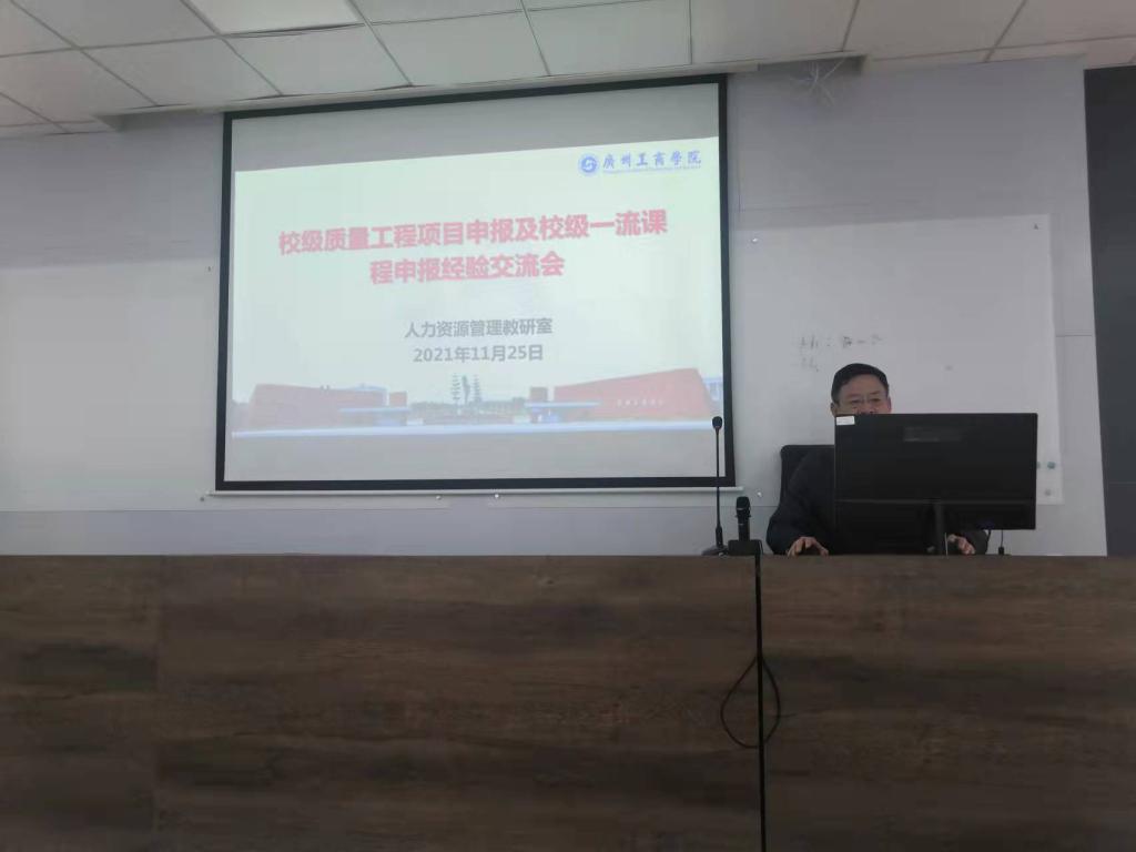 【本网讯】2021年11月25日下午,人力资源管理教研室在第二实验楼A303教室举办校级质量工程项目申报及一流课程申报经验交流会,会议由刘兆峰教授主持,教研室全体老师参加会议。刘教授在会议开场时介绍了高校科研项目的种类、项目审批的基本标准、项目申报书的注意事项以及项目申报的原则。刘教授特地强调项目申报应循序渐进,打有准备之仗,各位老师在日常教学中应注意发现问题、研究问题,做好记录,积极参与,争取从无到有。...