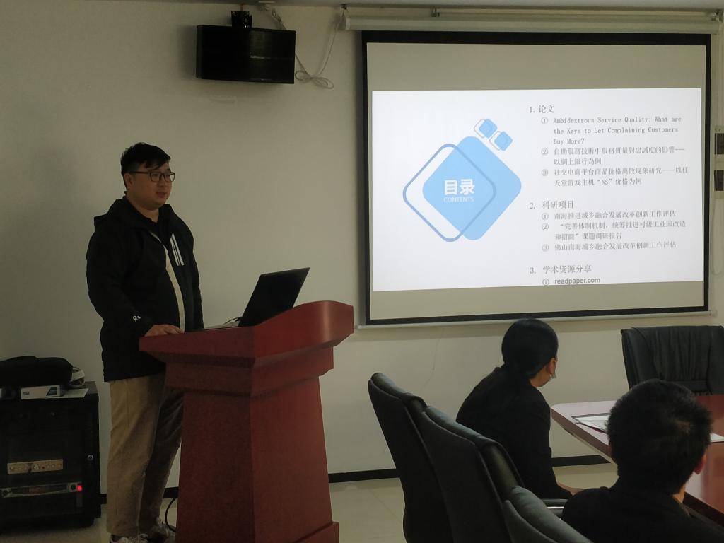 【本网讯】2021年11月26日下午,管理学院在院部楼624会议室举办第四期“学术沙龙”活动。活动由分管科研工作的陈石清副院长主持,本期由何锦明博士主讲,张所地教授作为嘉宾出席。无课的博士教师、其他感兴趣的教师及科研秘书李昂参加了本次活动。 何锦明博士介绍了自己的研究方向、学术论文和项目成果,详细地分享了自己的博士论文。随后,何锦明博士分享了自己所熟知的外文文献资料库及外文文献检索的简要方法。何博士的分享...
