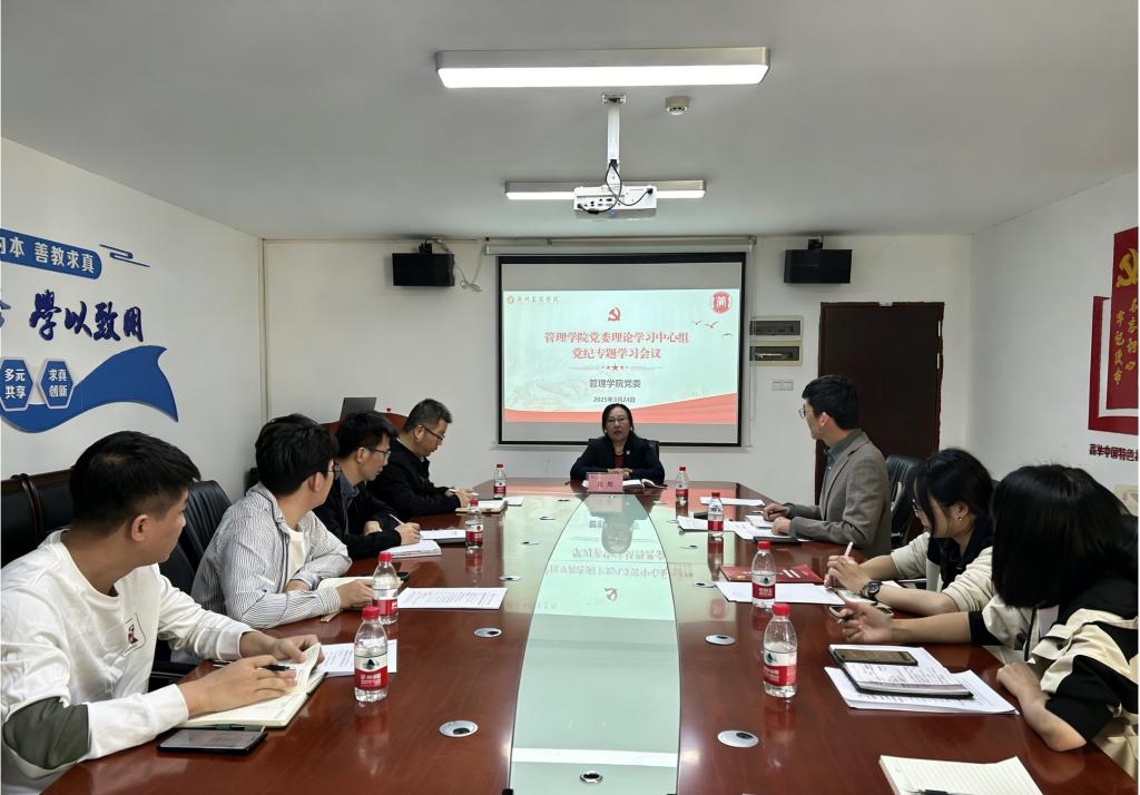 【本网讯】为深入学习贯彻习近平总书记关于深入贯彻中央八项规定精神学习教育的重要讲话和重要指示精神,贯彻落实学校党委的相关工作部署,持续深化作风建设,筑牢党员干部思想防线,2025年4月14日,管理学院于三水校区院部楼612会议室召开党委(扩大)会议,开展深入贯彻中央八项规定精神学习教育专题学习。本次会议由学院党委副书记赵小锋主持,学院党委委员、党委专职组织员、各党支部书记参会。会议首先严格落实第一议题制...
