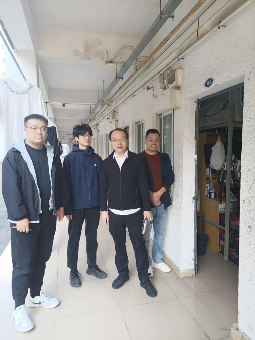 【本网讯】为进一步加强学生宿舍安全管理,营造文明、和谐、稳定的学习生活环境,深化服务育人成效,2025年12月18日,学院党委副书记罗俊带领学生党支部书记张渊超、梁家华、钟伟等人深入学生宿舍片区,开展走访检查与关怀活动。
