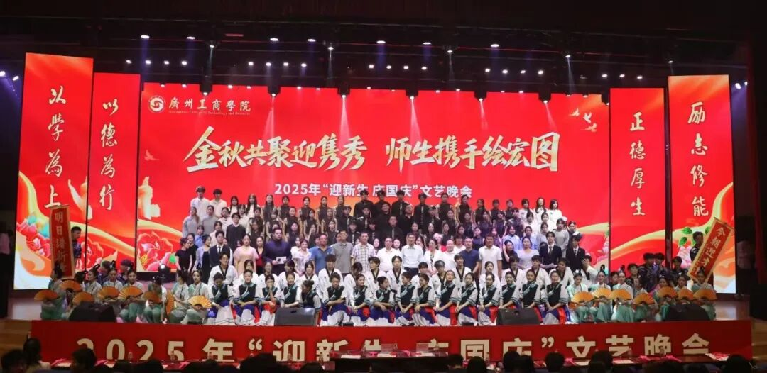 【本网讯】广州工商学院于2025年9月26日晚在院部楼学术报告厅成功举办2025年迎新文艺晚会。整场晚会以“金秋共聚迎隽秀,师生携手绘宏图”为主题,涵盖歌舞、朗诵、器乐等多种表演形式,展现了学子们的青春风采。