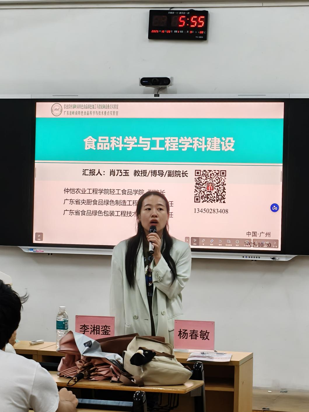 讲座伊始,肖乃玉教授系统介绍了仲恺农业工程学院食品科学与工程学科的建设成果,从学科定位、核心科研方向、师资队伍实力及科研平台资源等方面,全面展现了该学科的核心竞争力与发展优势,为我校学子搭建了了解外校优势学科的直观窗口。