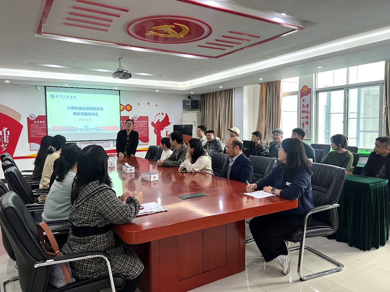 【本网讯】广州工商学院工学院计算机基础课程教研室于2025年12月30日14:00至15:00,在院部楼512室组织召开了期末专题培训会。此次会议由教研室主任陈雪老师主持,教研室全体20名教师均参加。会议旨在全面传达学校及学院对于期末考试监考与阅卷工作的规范化要求,强化教学过程管理意识,确保期末考核工作的严谨性、公平性与规范性。