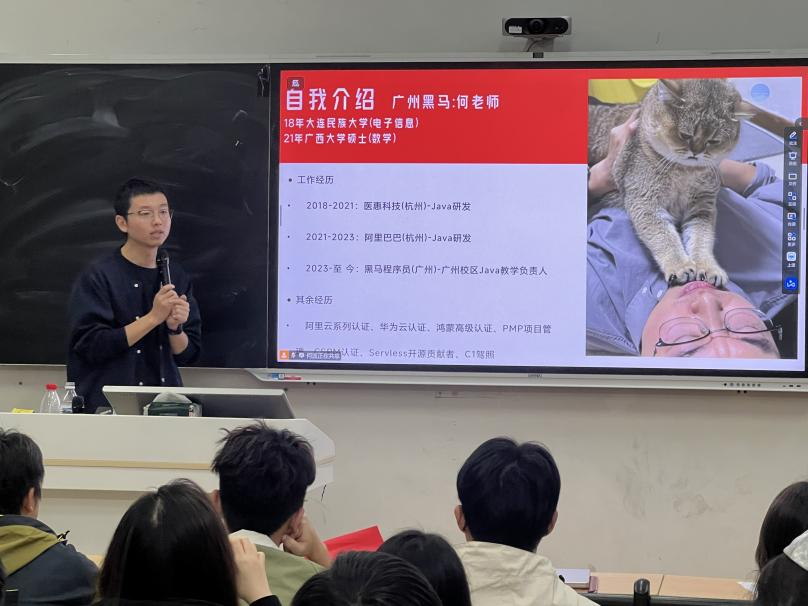 讲座过程中,何老师通过详实的课程体系、真实的项目案例、清晰的成长路径,为同学们搭建起专业知识与职场需求之间的桥梁。同学们认真记录、积极思考,现场学习氛围浓厚。