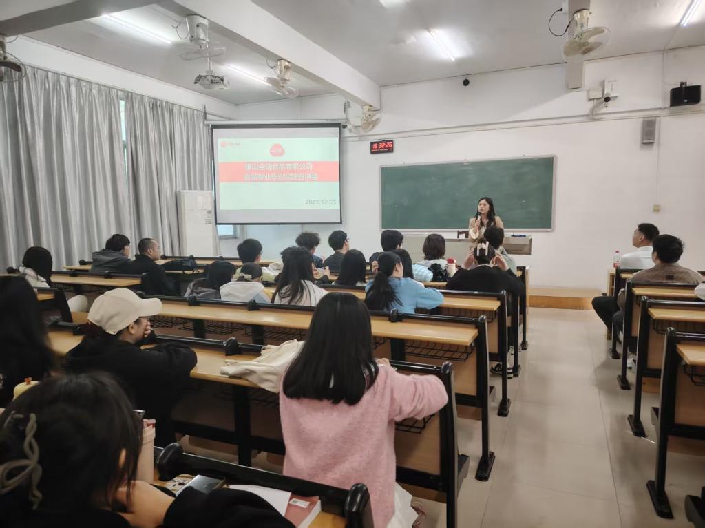 【本网讯】为深化产教融合,搭建学生与优质企业精准对接的桥梁,近日,广州工商学院食品相关专业特邀佛山市全瑞食品有限公司生产部经理李新及人事专员罗梦夏到校,为2026届毕业生举办了一场内容充实、富有指导意义的专场宣讲会。活动聚焦毕业生实习就业、职业发展等核心关切,现场气氛热烈,互动频繁。
