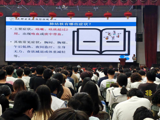 讲座现场秩序井然、学习氛围浓厚。曾医生紧密结合高校人员密集、学习生活集中的特点,以通俗易懂的语言、图文并茂的课件,系统讲解了肺结核的致病原因、传播途径、典型症状与科学防治方法。讲座重点强调连续咳嗽、咳痰两周以上等肺结核可疑症状的早期识别,详细解读国家结核病免费筛查、规范诊疗等惠民政策,有效消除了师生对结核病的恐慌心理与认知误区。同时,结合校园真实案例深入分析传播风险,引导师生自觉养成勤开窗通风、不随地吐痰、保持社交距离等良好卫生习惯,倡导坚持体育锻炼、合理膳食、规律作息,全面增强自身免疫力。