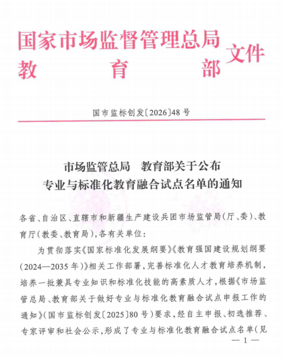 【本网讯】近日,国家市场监管总局、教育部联合公布专业与标准化教育融合试点名单。本次试点是两部门首次联合开展的全国性专业与标准化教育融合工作,覆盖国家重点产业与民生领域,全国30个省(区、市)的253所高校入选。广州工商学院成功获批全国首批“专业与标准化教育融合试点”。