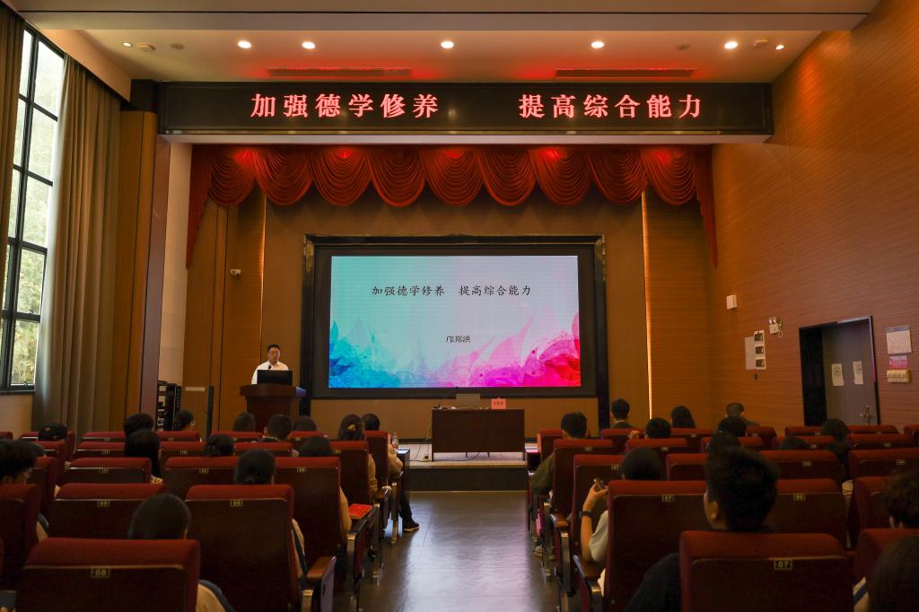 【本网讯】11月6日下午,广州工商学院花都校区图书馆416报告厅内座无虚席,一场题为“加强德学修养,提高综合能力”的专题课程在此开讲。学校终身名誉校长邝邦洪教授以深厚的学术积淀与教育情怀,为在场师生带来了一场关于“德学五进”育人理念的思想盛宴。商学院领导班子、师生代表齐聚一堂,共同探寻新时代高校立德树人的实践路径。