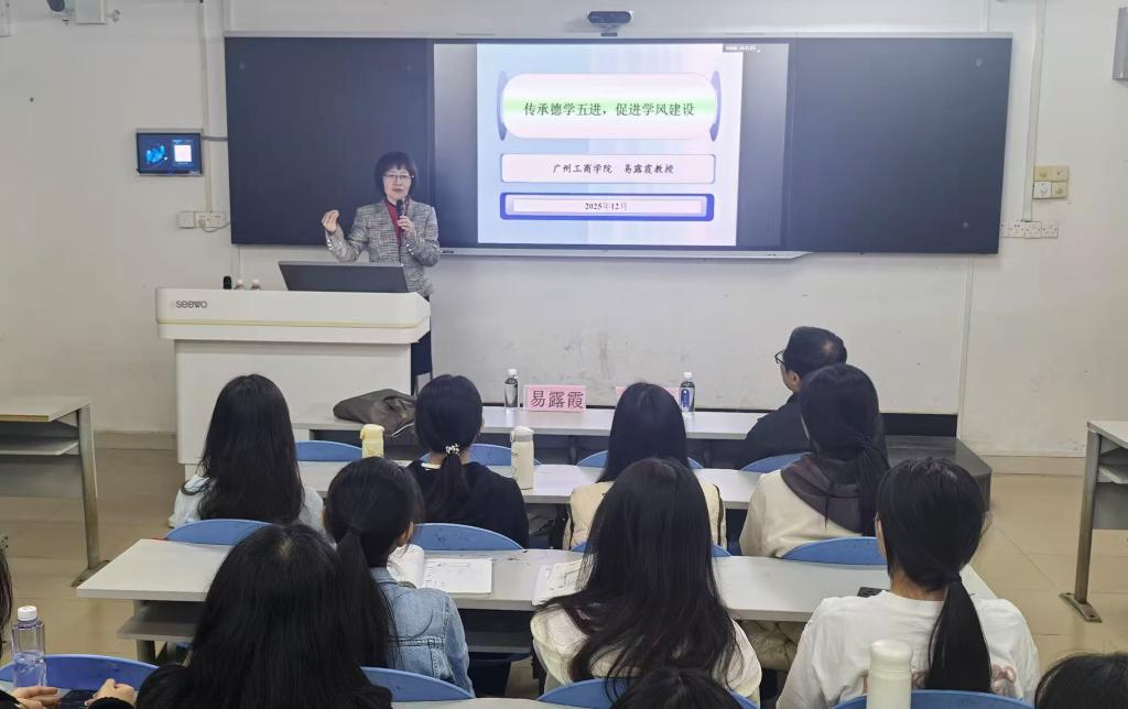【本网讯】为深入推进“德学·五进”育人理念落地见效,夯实校园学风建设根基,12月30日晚,学校副校长易露霞教授在花都校区为外语学院学生党员、学生干部代表开展“传承德学五进,促进学风建设”专题授课。讲座紧扣立德树人根本任务,精准回应青年学生成长成才需求,为学院学风建设提质增效、营造崇学尚学的育人氛围注入强劲动力。