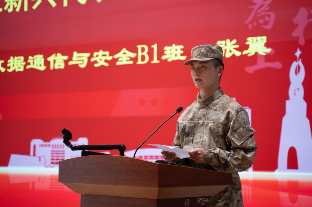 胸怀家国、立志军营。入伍新兵代表22网络工程数据通信与安全B1班张翼同学发言,深情感谢母校悉心培育与师长谆谆教诲,表示将牢记“正德厚生,励志修能”校训,践行“以德为行,以学为上”教育理念,快速完成从大学生到合格军人的角色转变,把青春热血融入强军兴军伟大实践,以忠诚与担当筑牢祖国钢铁长城。