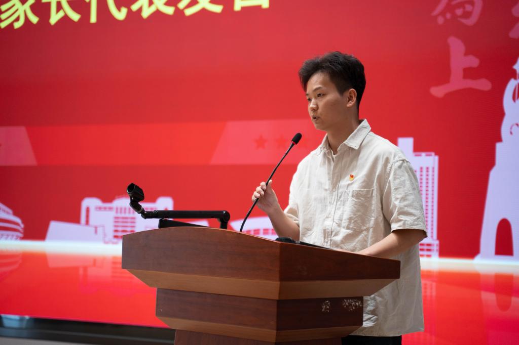 送子参军,无上光荣。新兵张翼家长代表张辰发言,感谢学校将国防教育融入育人全过程,以校训精神引领学子投身军营、保家卫国。他寄语全体新兵严守纪律、刻苦训练、锤炼本领,同时叮嘱大家照顾好自身,家人永远是最坚实的后盾。