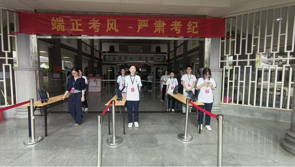 考试期间,省教育考试院考招一处、花都区招考办相关领导莅临我校考点视察指导;学校领导深入考场一线巡查督导,确保各环节工作落地落实。各部门各司其职、高效运转,形成考务工作强大合力:教务处牵头统筹考务与试卷保密,招就办做好考生咨询与应急打印服务,数字教育与装备中心保障设备平稳运行,后勤处抓实水电、医疗、食宿等后勤保障,保卫处维护校园秩序与交通疏导,校团委组织志愿者提供路线指引、人脸识别等贴心服务。全体考务人员坚守岗位、规范履职,确保各项考试平稳推进。