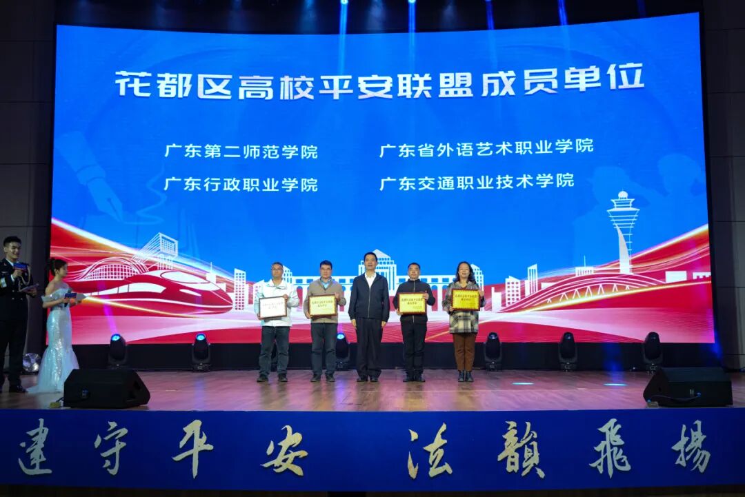 本次晚会创新融合网络直播、在线投票等多元形式,线上线下同频共振,构建起兼具教育性、娱乐性与参与性的安全宣传阵地。活动现场还为花都区高校平安联盟成员单位、反诈工作先进集体及最受欢迎节目进行表彰并授牌致谢。其中,我校被授予“花都区高校平安联盟成员单位”,并荣获“反诈工作先进单位”荣誉称号。